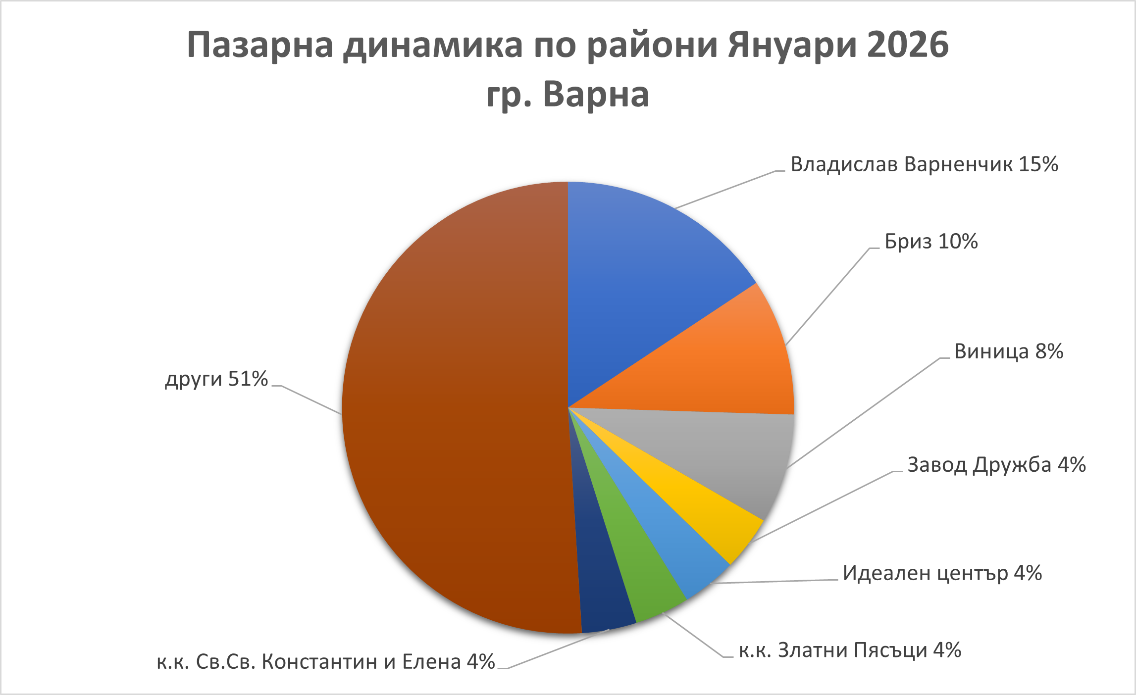 Януари традиционно е един от най-спокойните месеци на пазара на недвижими имоти и 2026 г. не прави изключение. След изключително динамичния и силен декември, съпътстван от натрупване на множество празнични дни, пазарът логично намаля темпото си. Въпреки по-ниската активност, януари остава ключов месец, който дава ясна индикация за нагласите на купувачите и посоката, в която пазарът навлиза в началото на годината.Данните за януари 2026 г. показват умерен старт, който се вписва в историческите нива за този период. Липсват резки отклонения, а поведението на участниците на пазара може да се определи като рационално и предпазливо.